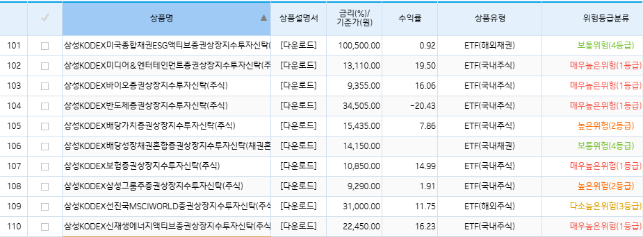간혹 기업은행에서 조회를 해도 제가 올린 리스트에 있는 ETF 종목이 없다고 문의주십니다.